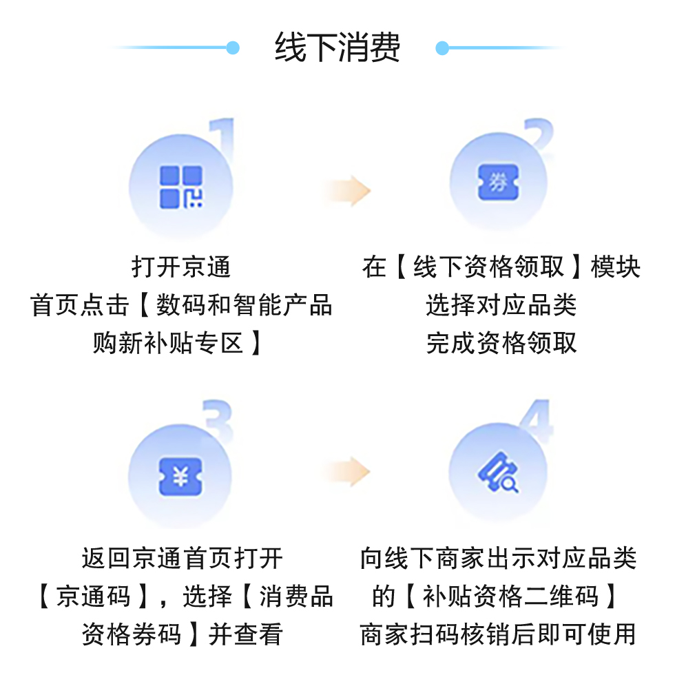 上述4類智能家居產品采用“立減補貼”模式。個人消費者通過“京通”小程序進入“智能家居補貼”專區,按需領用智能家居產品補貼資格券碼,通過政策參與企業購買上述智能家居產品時,於訂單支付環節享受立減補貼,線上線下消費享受同等補貼力度。具體參與政策商戶名單可通過“京通”小程序查詢。