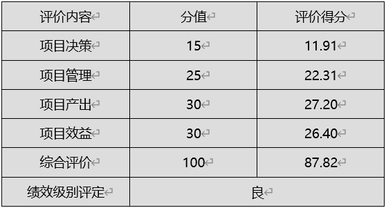 經評價,該項目綜合評價得分87.82分,績效級別評定為"良"。