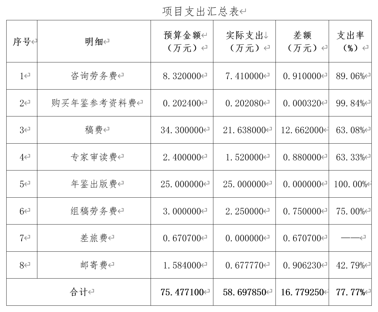 1)該項目資金由於內容精簡,稿費等結餘較多,財政資金有所結餘,但在項目過程中,未根據實際情況進行調整;勞務費、稿費等未提供專家職務、職稱、簽字等相關資料,項目管理過程不夠細化,項目經費管理需要進一步加強;