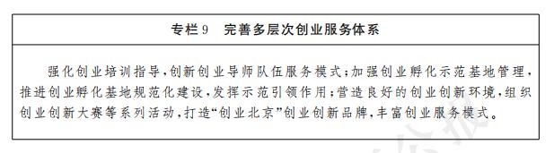 加強創業創新服務平台建設。集成政府和市場資源,完善創業服務資源對接平台,加快創業載體建設,健全集貸款融資、培訓指導、創業孵化、後續跟蹤等於一體的創業服務體係,提供低成本、便利化、全要素、開放式的創業創新服務,促進創新鏈、資本鏈、產業鏈“三鏈”融合。到2025年,新認定北京市創業孵化示範基地60家。