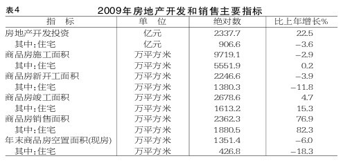 房地產開發:全年完成房地產開發投資2337.7億元,比上年增長22.5%;其中住宅投資906.6億元,下降3.6%。政策性住房完成投資298.6億元,比上年增長83.2%;其中經濟適用房投資100.9億元,限價房投資177.7億元,廉租房投資14.5億元,分別比上年增長86.7%、77.1%和68.9%,公共租賃房完成投資5.5億元。