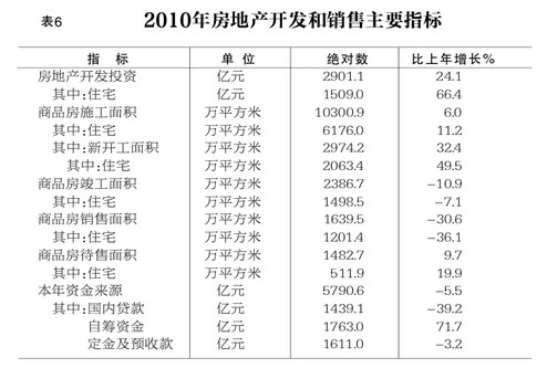 房地產開發:全年完成房地產開發投資2901.1億元,比上年增長24.1%。其中住宅投資1509億元,增長66.4%;辦公樓投資259.1億元,增長55.4%;商業營業用房投資336.3億元,增長67.5%。