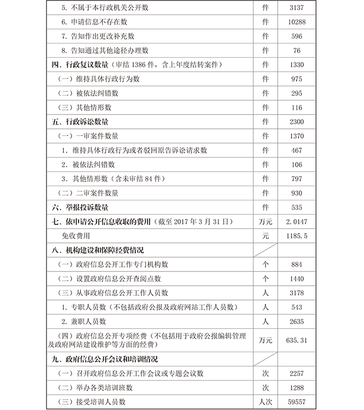 全市37499件申請辦結數為34226件,其中按時辦結數29246件,延期辦結數4980件。其餘未到答複期的按照《中華人民共和國政府信息公開條例》時限規定在2018年答複。