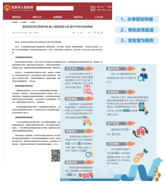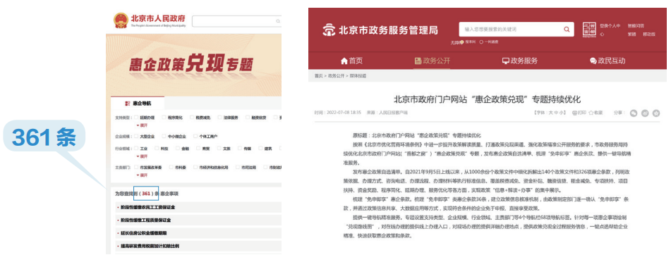 製發《北京市深化政務公開促進政策服務工作辦法》,細化政策管理、集成、兌現、評價等9個環節要求,提出政企聯絡、惠企政策匯集、政策信息協同等5項機製。