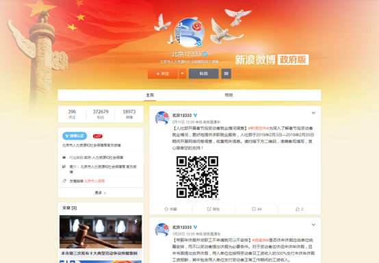 充分發揮好“兩微一端”新平台,繼續做好微信公眾號及手機客戶端界麵優化,不斷優化服務功能,讓服務更加便民。2018年完成了我局手機客戶端和微信公眾號功能優化工作,新增了15項在線辦事服務,方便群眾通過移動端互聯網服務實現社保卡申領、補換卡;查詢社保個人權益、招聘崗位信息、公務員公共科目筆試成績、勞動能力鑒定結論等,實現了“互聯網+就業”的突破,在局網站、手機客戶端和微信公眾號開通了技能提升補貼申請。自2018年初以來,我局官方微信公眾號關注人數達36萬人,官方手機客戶端下載量達5萬餘次。在微信公眾號“職人職說”、“百姓就業”、“好工作”、局官方政務微博“北京12333”和“北京人力社保”今日頭條號等平台,運用案例解讀、圖表圖解、音頻視頻等形式,以通俗易懂的語言對人力社保惠民政策開展形象化解讀,擴大政策影響力。
