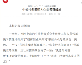 三是高水平服務。依托官方網站、微信公眾號、微博賬號及今日頭條的頭條號,初步建立起網上政務服務矩陣,設置政策速遞、政務谘詢、常見問題等欄目,積極推介中關村示範區的重要政策、資金支持項目等信息。為了及時給企業答疑解惑,公布了政策谘詢電話,建立健全了留言答複微信溝通機製、谘詢問題限時回複機製、疑難問題會商機製、谘詢回複問題情況通報機製,做到答複精準、回複及時、服務熱情,谘詢服務水平進一步提升。2019年網站、微信、微博等渠道共收到谘詢問題1600餘條,已全部按時按要求回複。