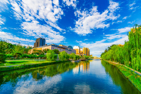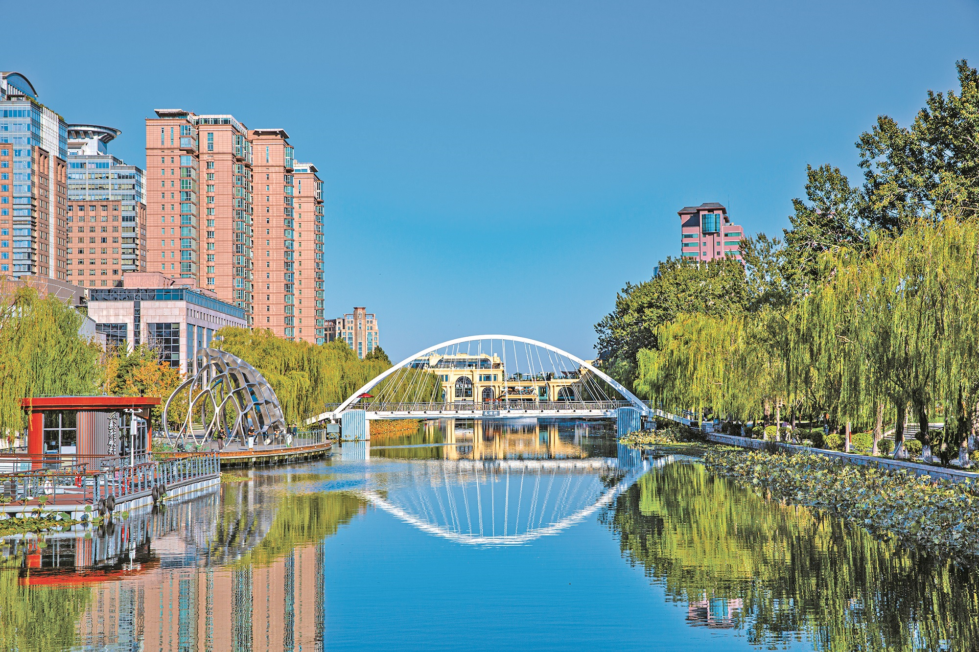 六是始終堅持綠色發展,是首都大尺度生態環境建設示範區。全麵推進美麗朝陽建設,創新實施“六美六朝”戰略,榮獲“中國魅力城區”榜首和全國“十大品質休閑勝地”,成功獲評國家生態文明建設示範區、全國首批減汙降碳協同創新試點,溫榆河公園朝陽段榮獲“綠色奧斯卡”金獎及特別獎,我區成為全球首個“新颯颯·全球更綠智慧城市”。統籌推動結構減排、工程減排、管理減排,持續深化“0.1微克”攻堅行動,大氣主要汙染物濃度連續4年穩定達到國家二級標準。區內分布著清河—溫榆河、壩河、通惠河、蕭太後河四大河係,通過連續實施四輪城鄉水環境治理三年行動,8個國考、市考斷麵優III比例達到100%,地下水水位連續六年回升。堅持以河道複興帶動城市更新,全區29條共214公裏骨幹河道連通有水,建成壩河、北小河等49.4公裏高品質濱水綠道,亮馬河國際風情水岸獲得國內外獎項29項。區內一半是森林,一半是城市,建成近1.7萬公頃城市綠地、6500餘公頃公園綠地,麵積均居全市第一,310公裏綠道串聯起公園、水岸、商圈、社區,“十四五”以來,累計打造了溫榆河公園朝陽段一期等5個綠隔公園、25處小微公園綠地、68處無界公園、15個全齡友好公園,初步形成了“兩環六楔、五河十園、多廊交織”的綠色空間格局。