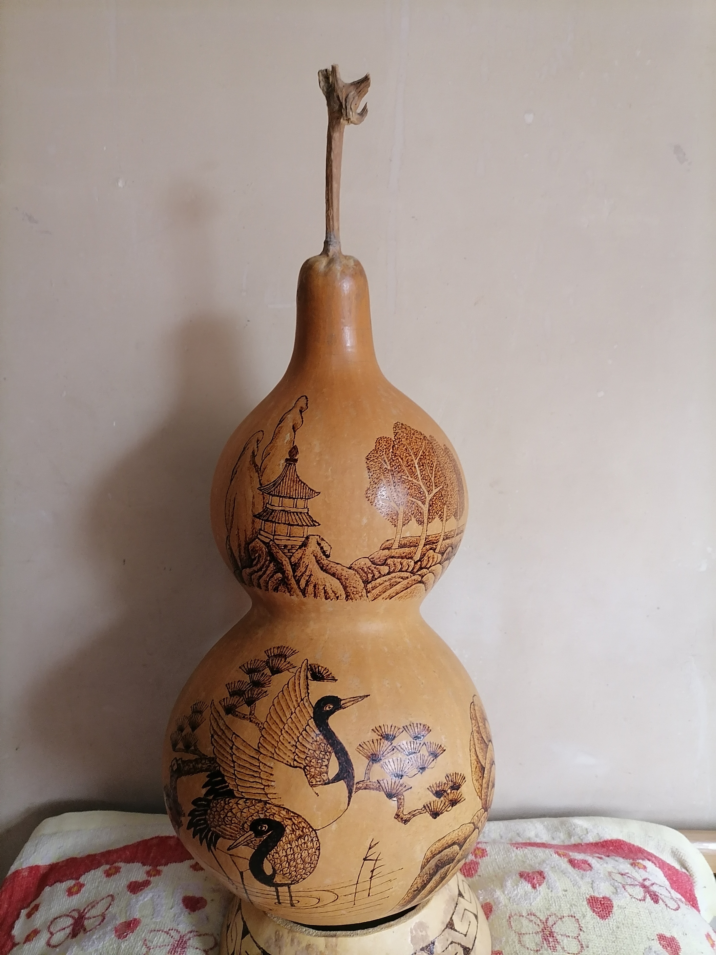 烙畫葫蘆,又稱燙畫葫蘆,火筆畫葫蘆,是一種寓意福祿平安,深受百姓喜愛的傳統工藝美術品。