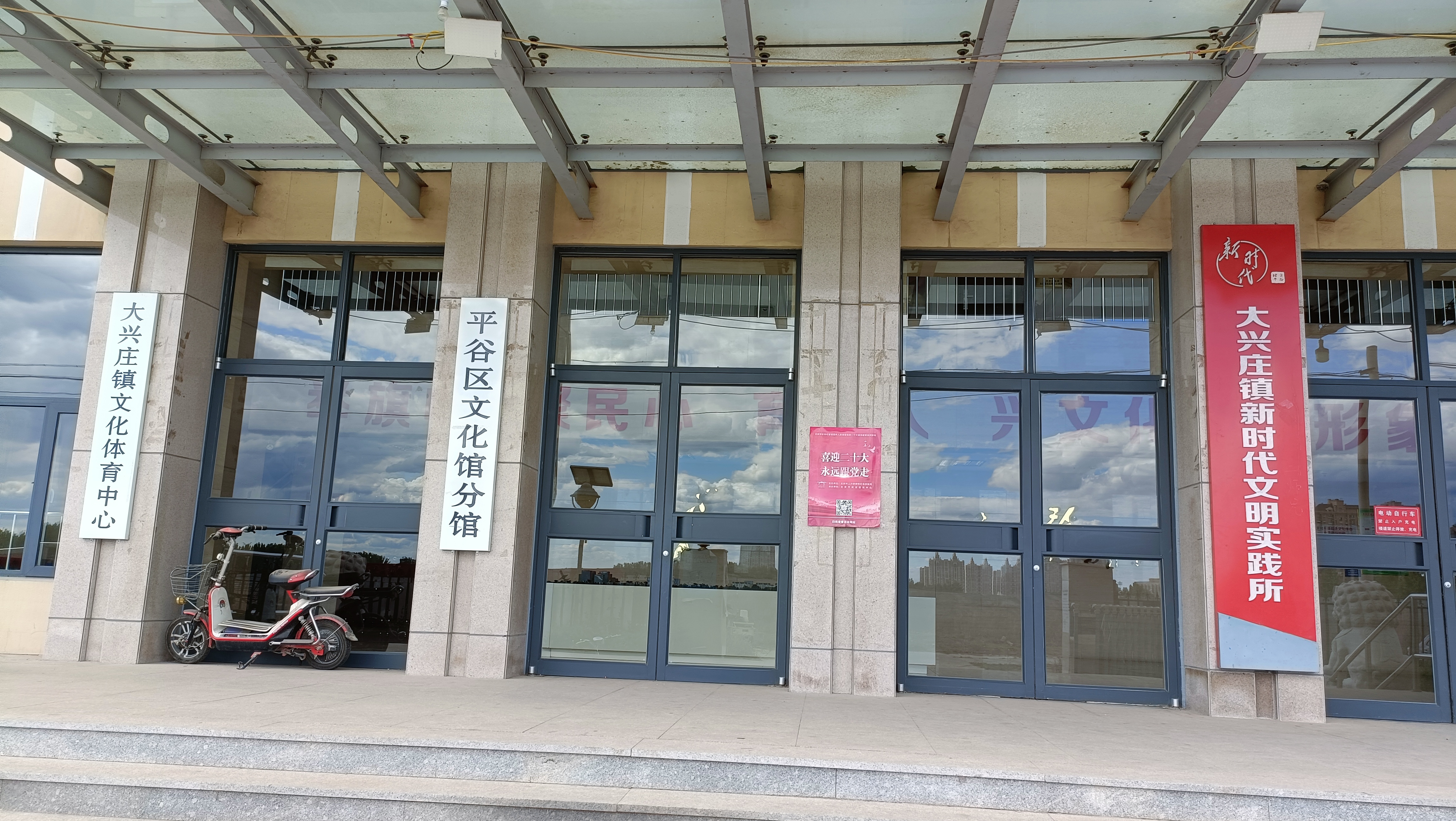 大興莊鎮文化服務中心於2015年建設完成,總麵積1399平方米。內設多功能廳、圖書室、圖書閱覽室、文體活動室、舞蹈排練室、公共電子閱覽室、文化信息資源共享工程室、電教室、室外活動場地等設施。其中,圖書閱覽室藏書26000餘冊。2018年3月份,大興莊鎮圖書館與區圖書館聯網實行一卡通服務,實現通借通還,是平穀區第一個與區圖書館實行聯網的圖書館 。