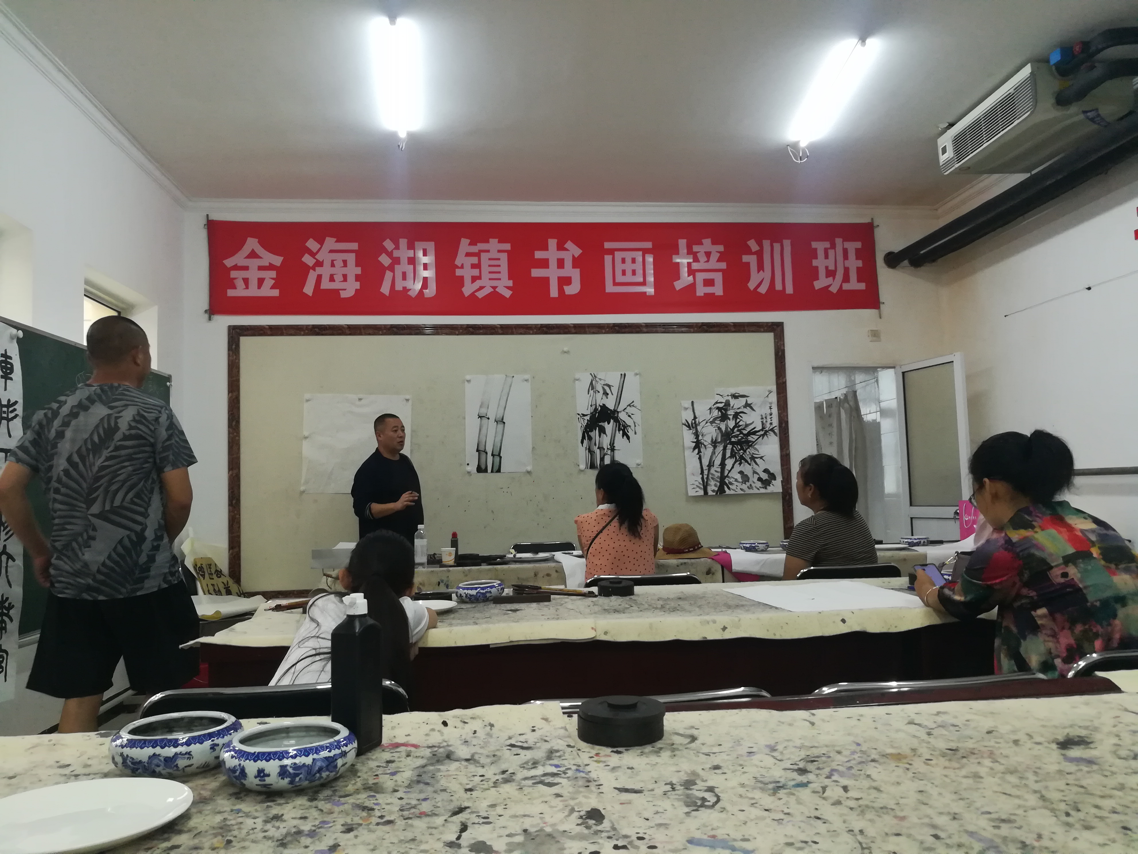 金海湖鎮文化服務中心於2015年開工建設,在2017年年底完工,總建築麵積3600平米。設有綜合活動室、圖書室、報刊閱覽室、書畫書法培訓室、演出排練室、多功能廳等服務項目。服務中心管轄28村,村村成立了秧歌隊、舞蹈隊,19個村成立了小劇團,9個小劇團堅持常年演出,其中5個小劇團獲得了營業性演出許可證。特色文化活有:每年一次的廣場舞大賽、戲曲大賽、小劇團擂台賽;17個班每周1次的書法書畫培訓活動、出版了我鎮學員的書法書畫作品集《金海藝林作品集》等。