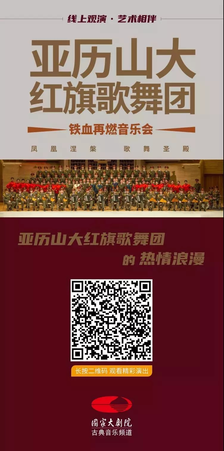 成立於1928年的亞曆山大·紅旗歌舞團,是俄羅斯曆史最悠久、規模最宏大、級別最高的軍旅藝術團體,擁有俄羅斯最優秀的功勳演員和舞蹈藝術家。2017年末的一場空難讓這個國寶級藝術團失去64名成員,令世人心痛惋惜。2018年初,這支迅速重組、鐵血再燃的隊伍,將空難後的第一次世界性演出獻給中國。在國家大劇院的舞台上,再現俄羅斯藝術勁旅浴火重生“堅不可摧的傳奇”。