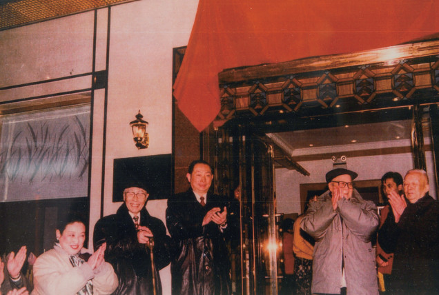 1996年11月,峨嵋酒家在西城區趙登禹路309號重張開業,梅蘭芳先生之子梅葆玖(左三)為其揭匾