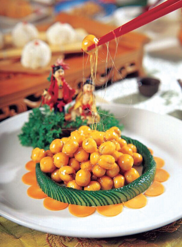 拔絲蓮子外酥裏嫩,口味甜香,絲長而不斷