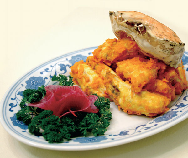 蛋黃炒雪蟹肉質飽滿細膩,口味鮮爽醇厚