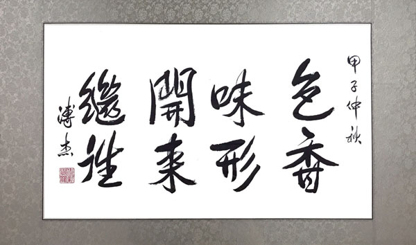 溥傑為柳泉居飯莊題詞:“色香味形開來繼往。”