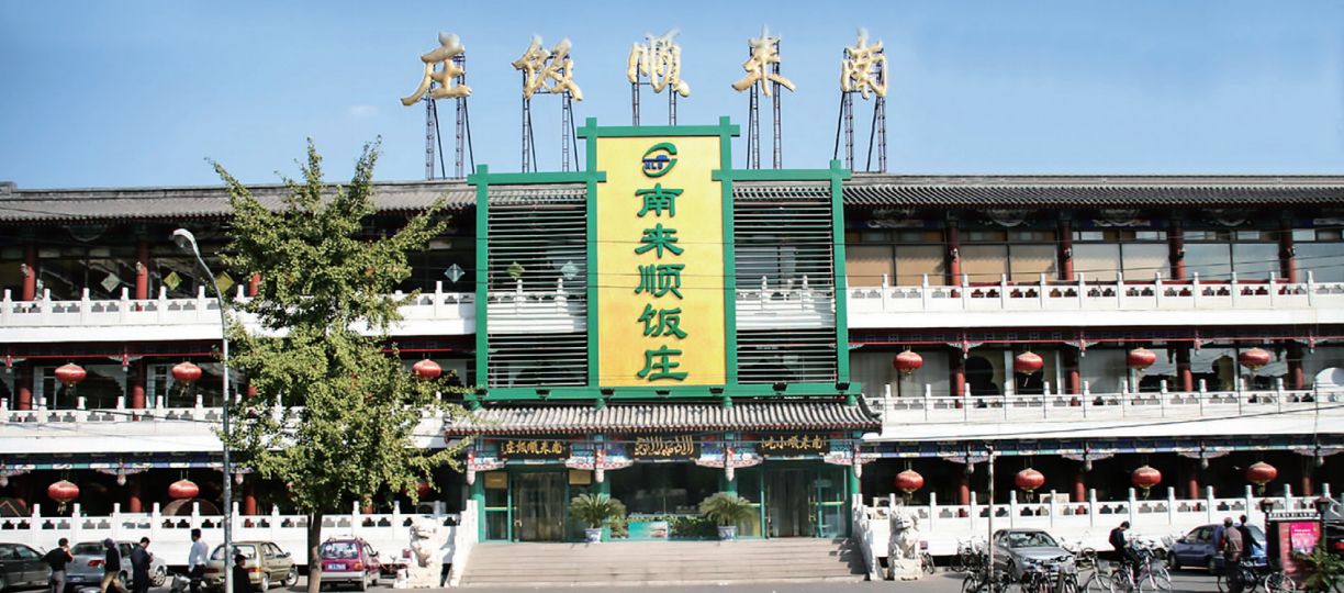 北京清真飯館有“老三順”,南城南來順飯莊始創於1937年,以爆、烤、涮等烹飪特色聞名京城。那時,南城回民集中,其中有些人無固定職業,但有手藝。他們靠兩把刀(切羊肉刀和切年糕刀)八根繩(指挑的擔子,兩頭各一個筐,各用四根繩拴起)謀生,逐漸形成品種繁多的清真小吃。如今,南來順飯莊經營清真風味炒菜、清真海鮮、蒜燒蹄黃、手工涮肉等,更有豆腐腦、艾窩窩、豌豆黃、爆糊等北京風味小吃上百種,享有“京城小吃第一家”的美譽。