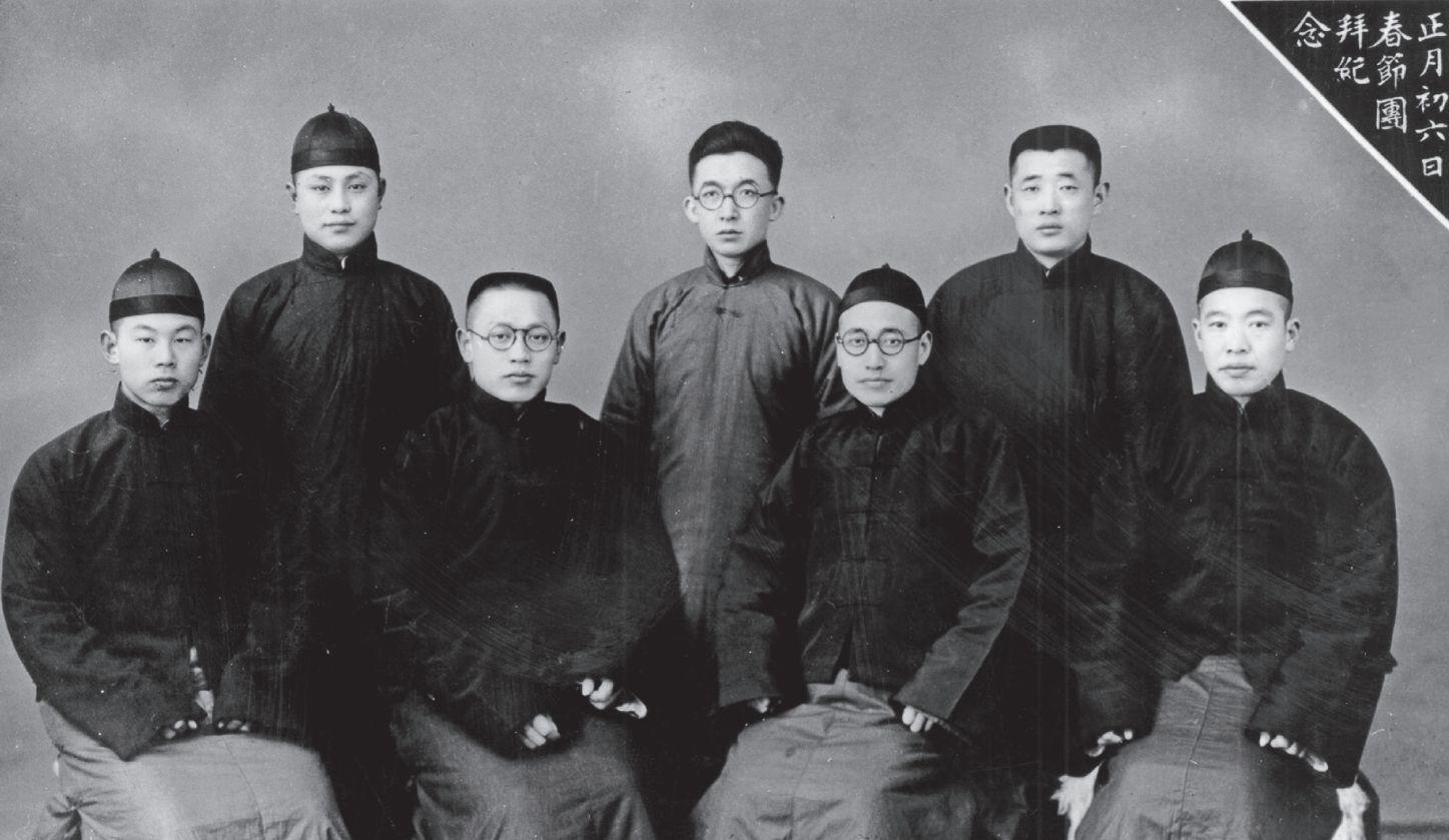 1939 年,全聚德時任二掌櫃李之植(前右二)、時任三掌櫃李景湘(前左二)與夥計合影。全聚德每年春節都會進行團拜,大夥兒一起照張全家福,把照片寄回老家,以解親人的相思之苦