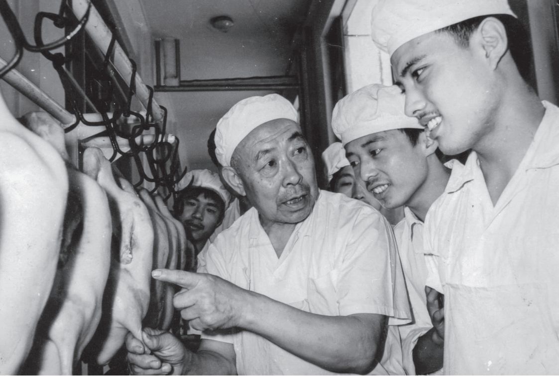全聚德第三代烤鴨名師張文藻(左)向年輕人傳授經驗