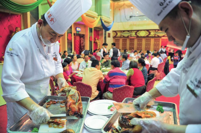 全聚德烤鴨師為客人片鴨