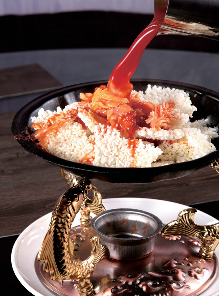 三鮮鍋巴色澤鮮豔,口味酸甜,香味濃鬱