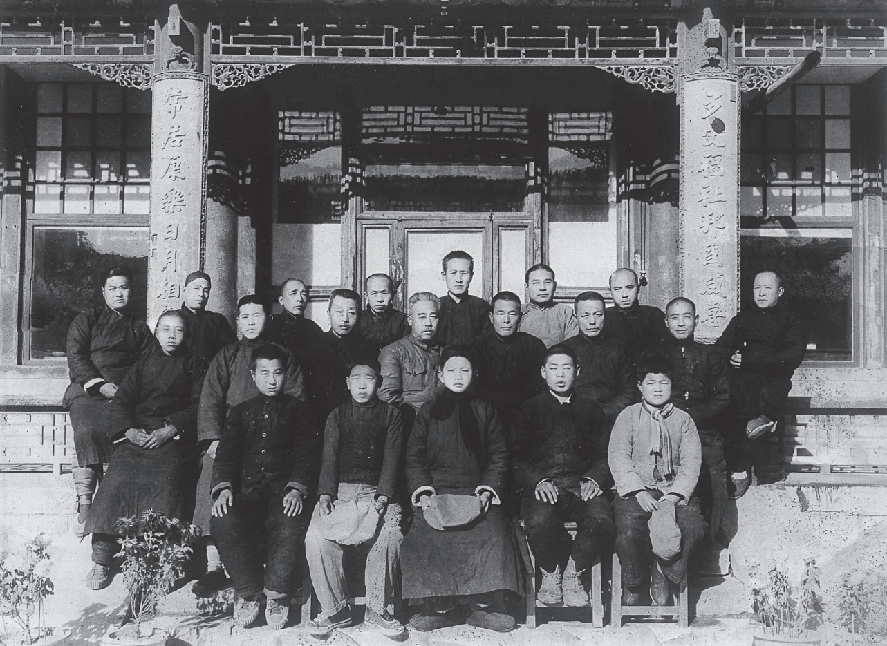 聽鸝館第二代傳人王福友(前排左三)與徒弟們交流技藝