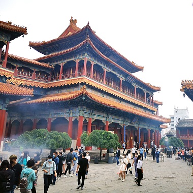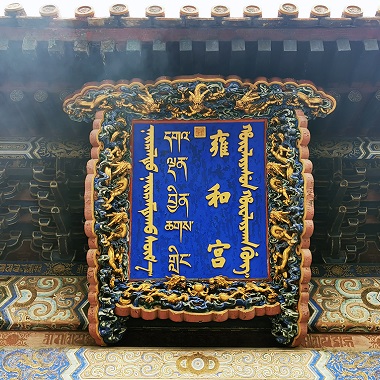 雍和宮,位於北京市區東北角,清康熙三十三年(1694年),康熙帝在此建造府邸、賜予四子胤禛,即後來的雍親王府。雍正三年(1725年),改王府為行宮,稱雍和宮,雍正十三年(1735年),雍正帝駕崩,曾於此停放靈柩,因此,雍和宮主要殿堂原綠色琉璃瓦改為黃色琉璃瓦。雍和宮,曆史上曾是清代雍正和乾隆兩代帝王的在潛之居。乾隆九年(1744年)改為藏傳佛教寺院。1981年,作為宗教活動場所對外開放,是北京地區最大的藏傳佛教格魯派寺院。