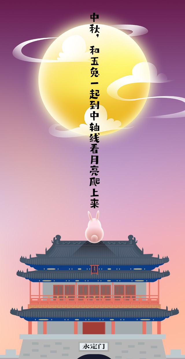 中秋佳節,住在月宮的玉兔偷偷來到凡間,想要一覽北京城中軸線的風采。