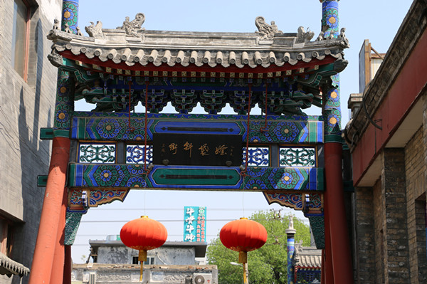 煙袋斜街位於地安門外大街鼓樓前,什刹海前海北側,東起地安門大街,西至小石碑胡同與鴉兒胡同相連,北起大石碑胡同,南至前海北沿,街區占地14公頃。此街東西斜形走向,全長232米,寬5—6米,街道兩側建築典雅樸素,頗具明清傳統風格,其前店後居的形式呈現出古風猶存的市井風情,充分展現出濃鬱的老北京傳統風貌。煙袋斜街出現於元代,與元大都的建設休戚與共。劉秉忠修建大都城使鼓樓地區形成商業中心,郭守敬開鑿通惠河使積水潭成為北京的古海港,周邊地區形成斜街。隨著河道形成街巷,人們為了方便抄近路出行,久而久之,走出了煙袋斜街。