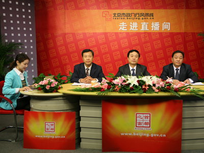 主持人:親愛的首都之窗網友大家下午好,您正在收看到的是北京市政風行風熱線走進直播間節目,那麽自2012年1月1日起北京市文化市場綜合行政執法辦法已經正式實施到今天應該有11個月之餘了,那麽這個辦法的實施效果如何,今天关键词2就請到了北京市文化行政執法總隊的相關負責人和大家一起來聊一聊這個法的執行情況,並為关键词2去解讀這個辦法,那麽首先我先來介紹一下今天的在座三位嘉賓,北京市文化執法總隊副總隊張新聞發言人周大慶,歡迎您。周總跟來关键词2網友打聲招呼吧。