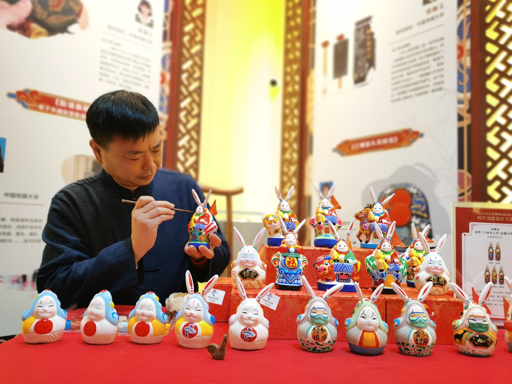 在與傳統文化結合方麵,他先後設計出北京中軸線係列、北京風情係列、北京老字號係列,以及與春夏秋冬、二十四節氣、北京二十四城門結合等一係列富有內涵的兔兒爺作品,吸引了不少年輕人。