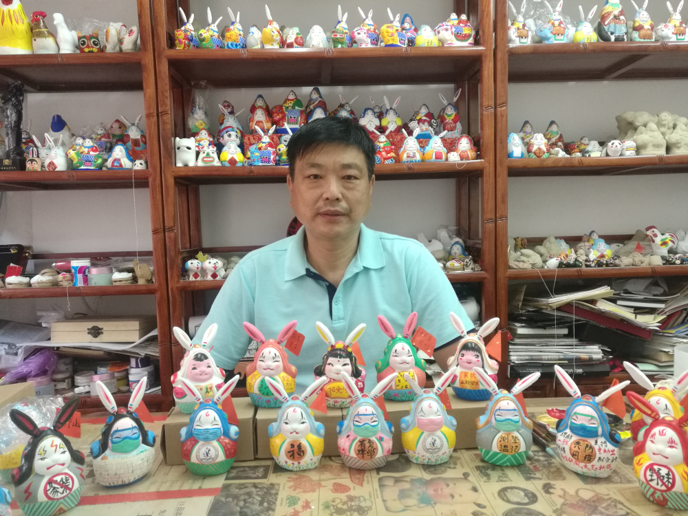 張忠強在堅持以原汁原味的手法傳承技藝的同時,一直在款式上進行創新,不僅將傳統文化融入兔兒爺的設計中,也將社會上的新文化、新元素融入其中。