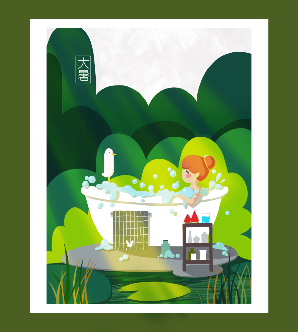 大暑所在的陰曆六月也稱“荷月”,民間多有賞荷習俗。(作者:雪娃娃童畫)