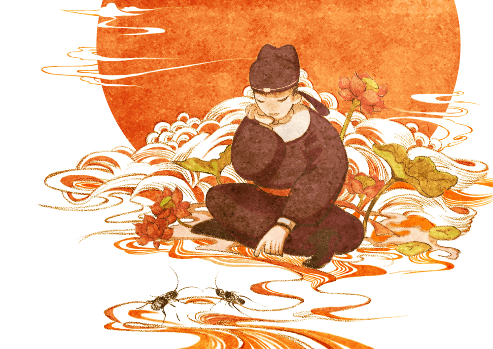二候土潤溽暑:天氣開始悶熱,土地也很潮濕。溽是濕,大暑時,濕氣濃重,濕熱令人難耐。(作者:賢二水墨)