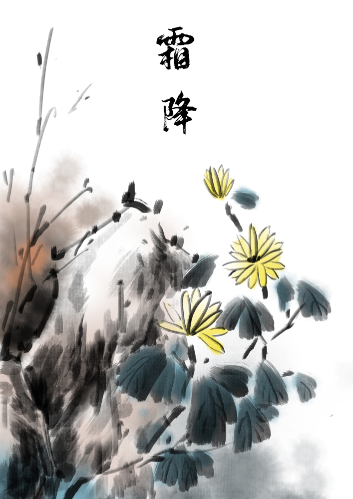 俗話講“霜降殺百草”,霜降過後,植物漸漸失去生機,大地一片蕭索。(作者:賢二水墨)