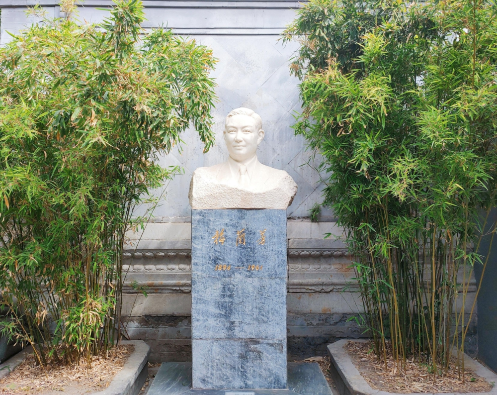 進入梅蘭芳紀念館大門,青石磚瓦的大影壁前,安放著一座梅蘭芳的半身塑像。翠竹掩映間,梅先生正深情、慈愛地凝望著到訪的每一位客人。