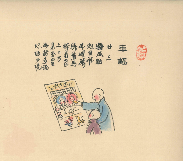 “廿三糖瓜兒粘”廿三這天要祭灶王,買些糖瓜供著,讓糖粘上灶王爺的嘴不讓他多說壞話。(作者:李濱聲、陳惠展)