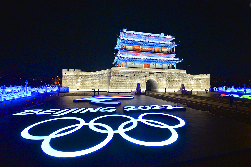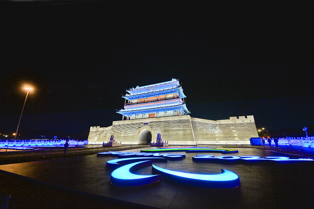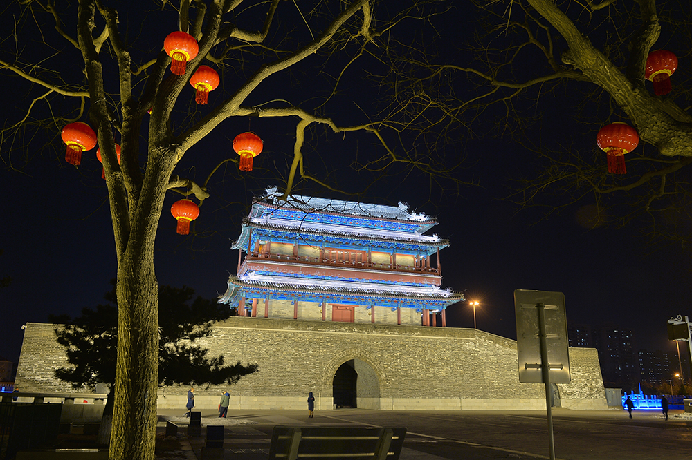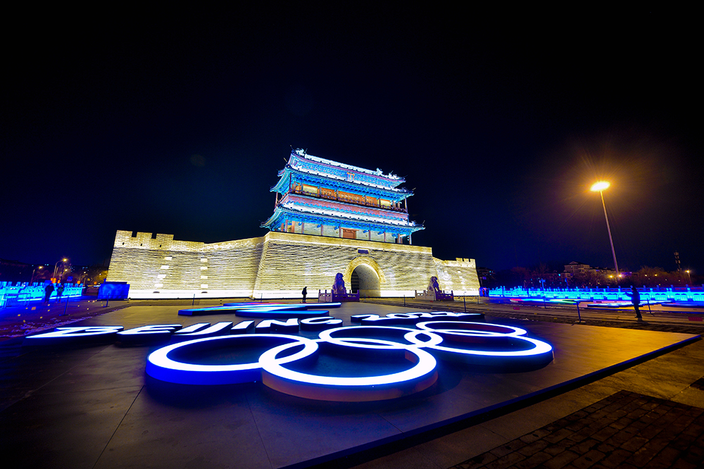夜幕降臨,“點亮中軸線”景觀扮靚北京中軸線,為春節和奧運添彩。永定門在夜景照明中還融入了設計元素,環保變色燈具和光暈可隨主題,變換營造濃厚的冬奧氛圍。