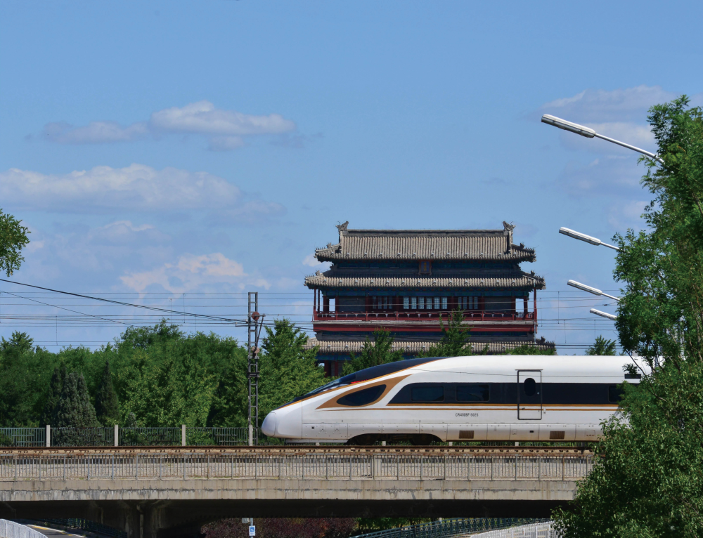 “京城古韻·青春采風”北京中軸主題手機攝影大賽圖片作品《永定門外複興號》(攝影:韓秋辰 15歲 )