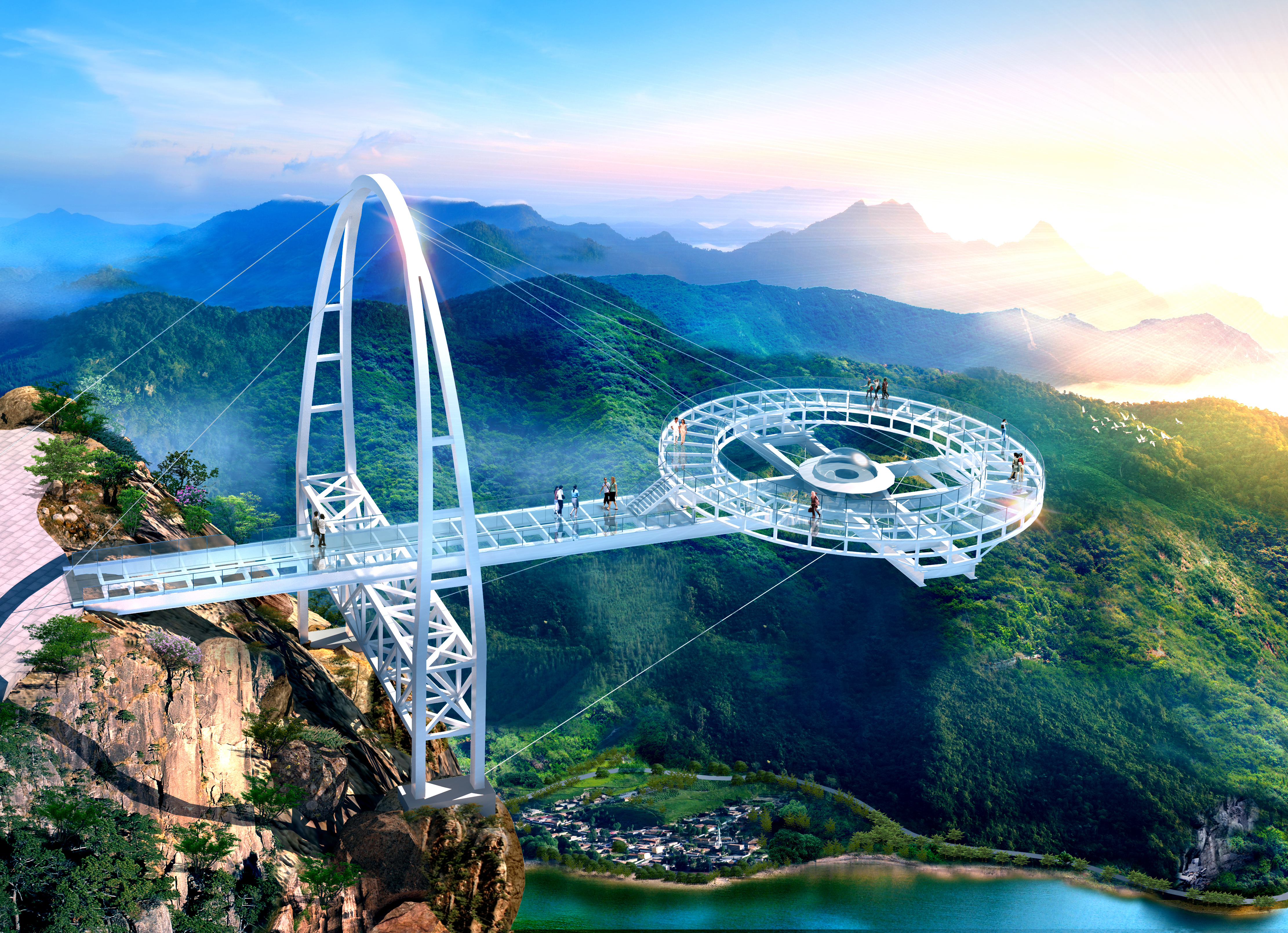 高居山巔的鈦合金“飛碟”玻璃觀景台多項指標世界領先,其驚險挑戰令眾多遊客終生難忘。