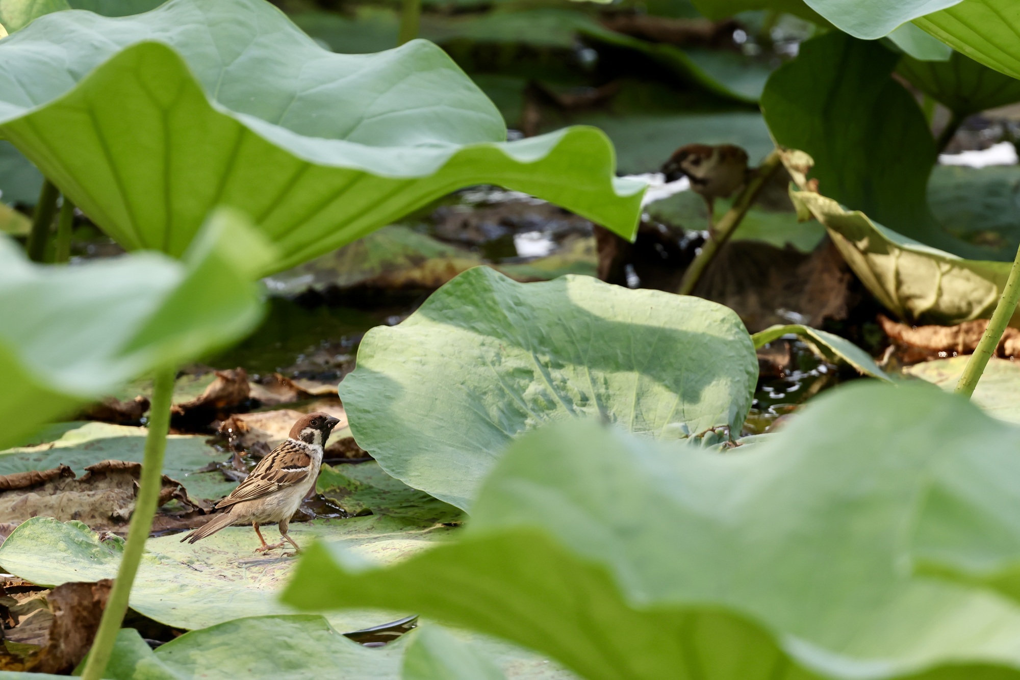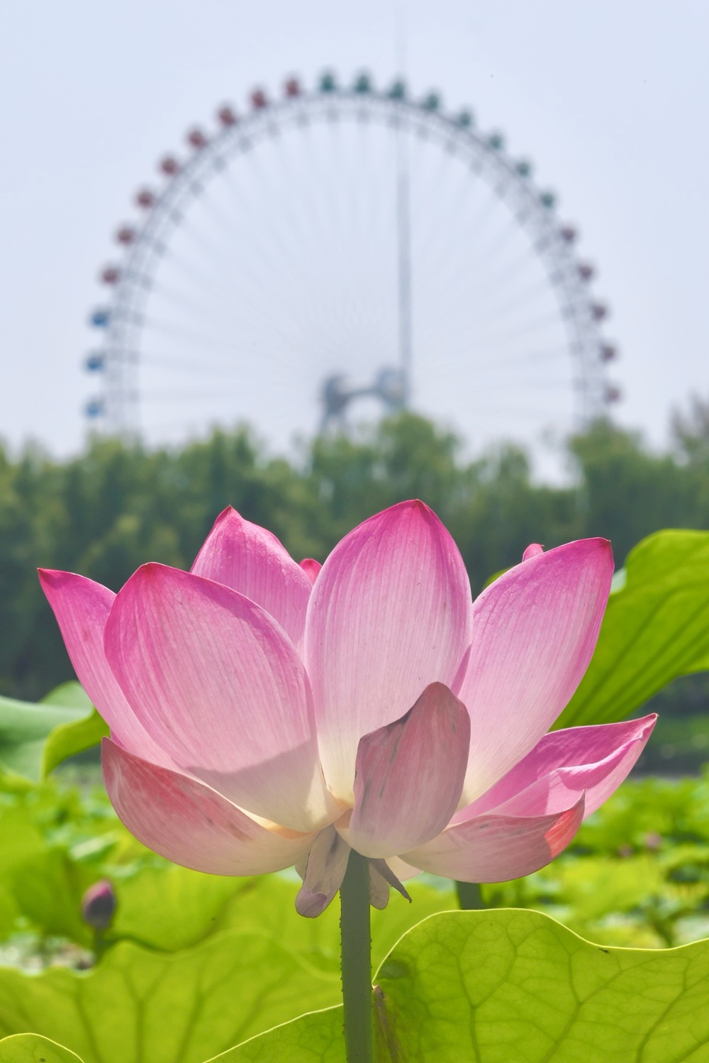 盛夏驕陽下,北京城的清荷以最蓬勃的姿態綻放。粉白相間的荷花或含羞半掩,或傲然盛放,碧色荷葉如傘如蓋,在微風中翻湧成翡翠浪濤。蜻蜓點水掠過花尖,薄翼折射出粼粼波光;鴨子撥開浮萍悠然遊弋,攪碎一池雲影;麻雀掠過水麵,尾羽掃落幾滴晨露,驚起漣漪串串。