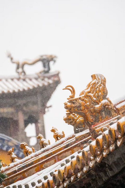 雪後的故宮,褪去喧囂,以素白之姿靜立天地之間。紅牆金瓦覆雪如蓋,飛簷鬥拱凝霜似玉,六百年的皇家氣象在冰雪中愈發莊重深沉。當鏡頭定格,記錄的不僅是雪景之美,還是故宮的冬日美學。(攝影:沈欣)