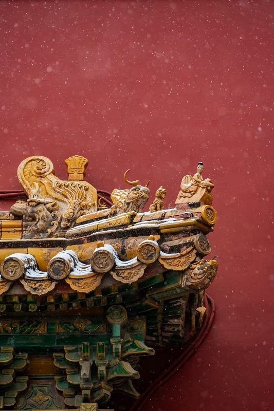 雪後的故宮,褪去喧囂,以素白之姿靜立天地之間。紅牆金瓦覆雪如蓋,飛簷鬥拱凝霜似玉,六百年的皇家氣象在冰雪中愈發莊重深沉。當鏡頭定格,記錄的不僅是雪景之美,還是故宮的冬日美學。(攝影:姚詠梅)