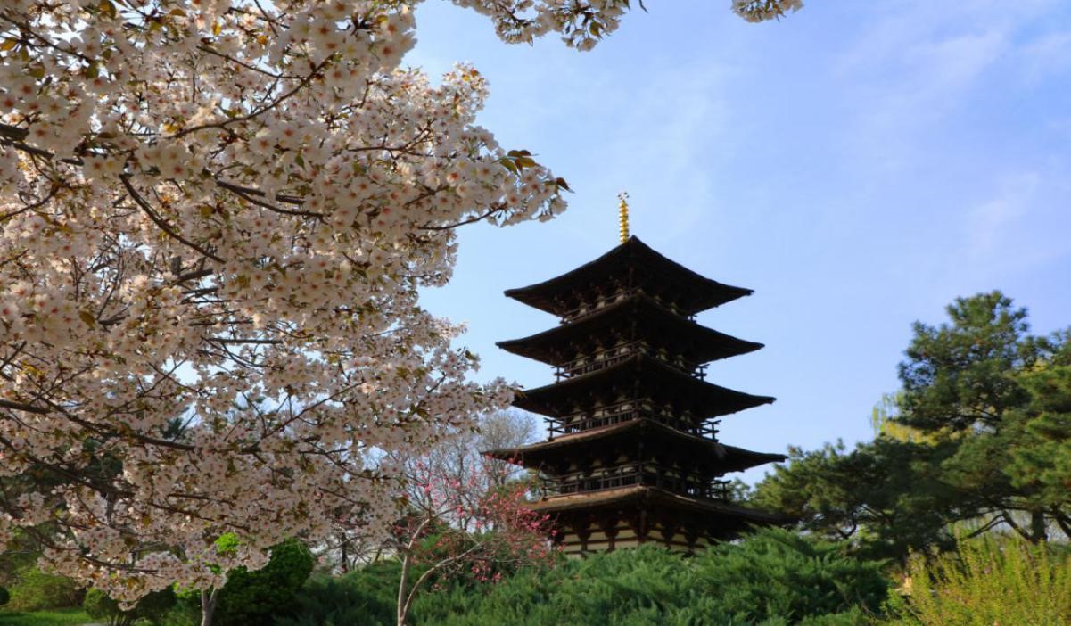 日本的五重塔和盛開的櫻花交相輝映,仿佛煥發了青春。