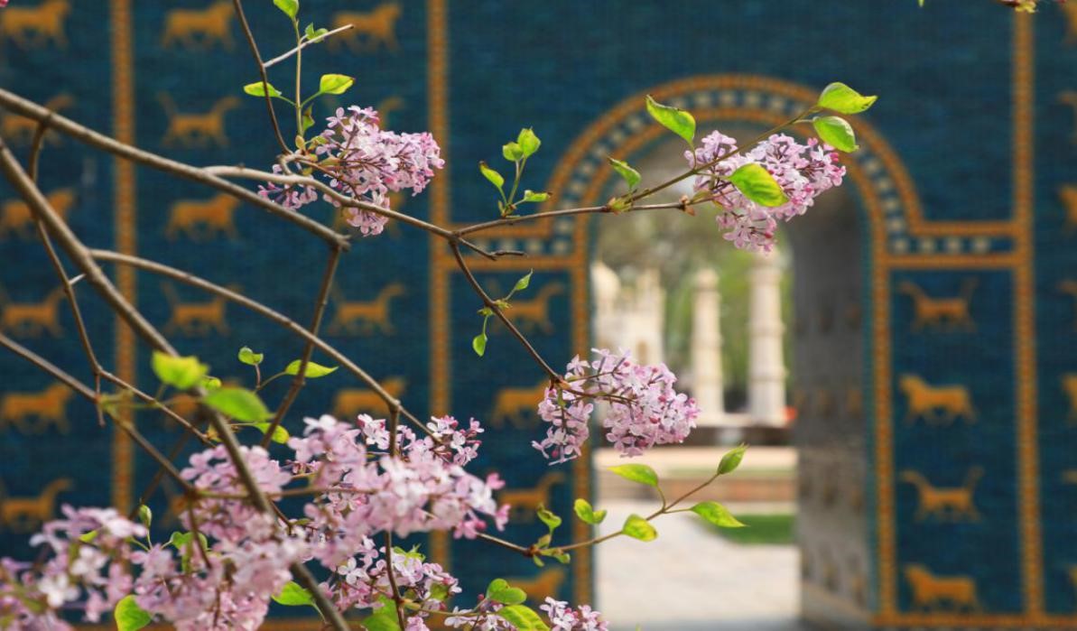 伊拉克藍色調的古巴比倫門,在丁香樹的陪伴下,享受著它散發出的清香,讓人們不僅想起世界上第一部法典《漢謨拉比法典》的誕生。