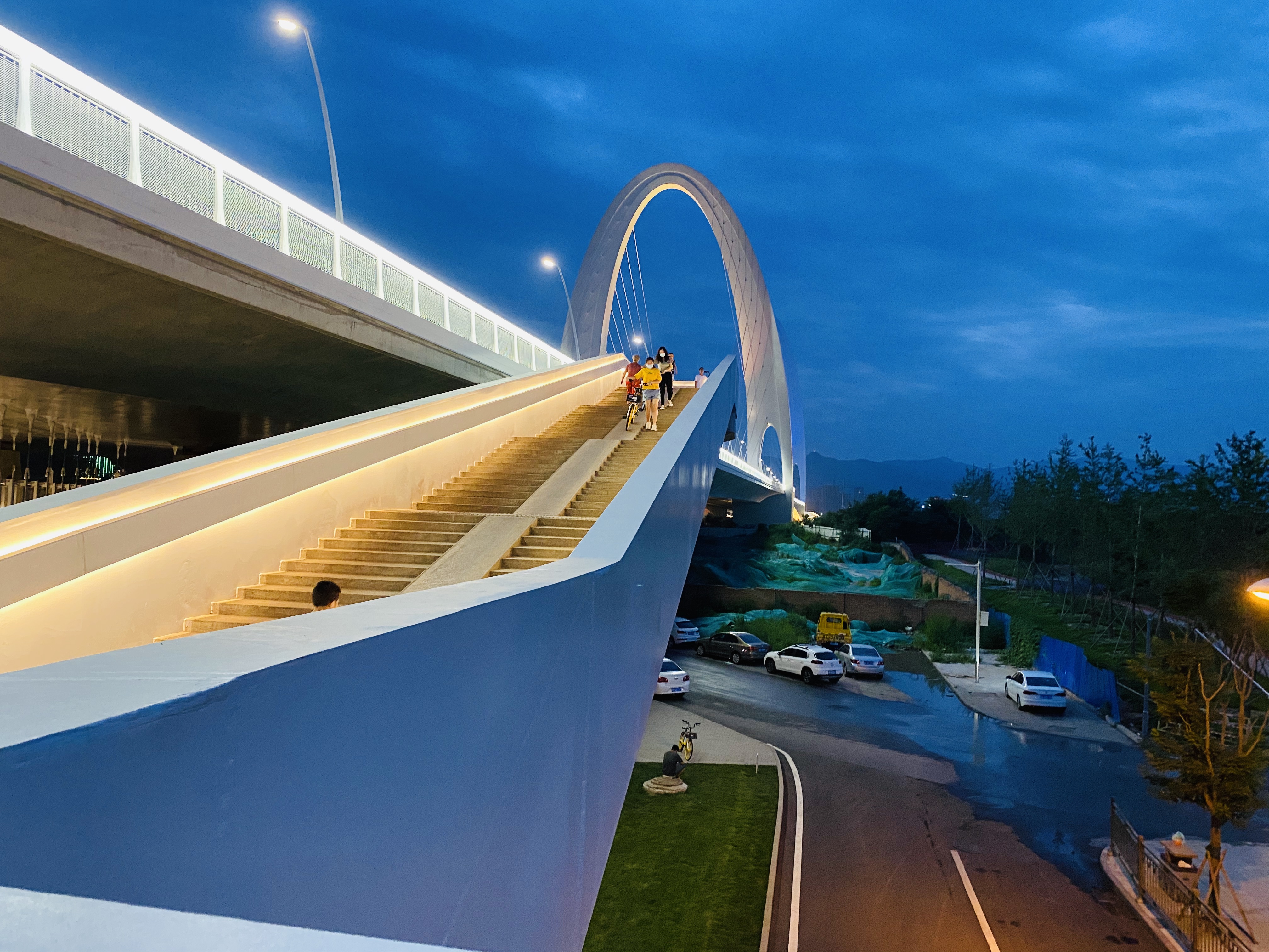 首鋼始建於1919年,2010年搬遷後,遺址改建為文化產業園,遺留下的老式廠房早已變身為工業風網紅打卡聖地,是工業遺跡和自然環境的有機融合。新首鋼大橋連接石景山區與門頭溝區,就像一座兼具力與美的鋼鐵藝術品,成為北京西部地標性建築。