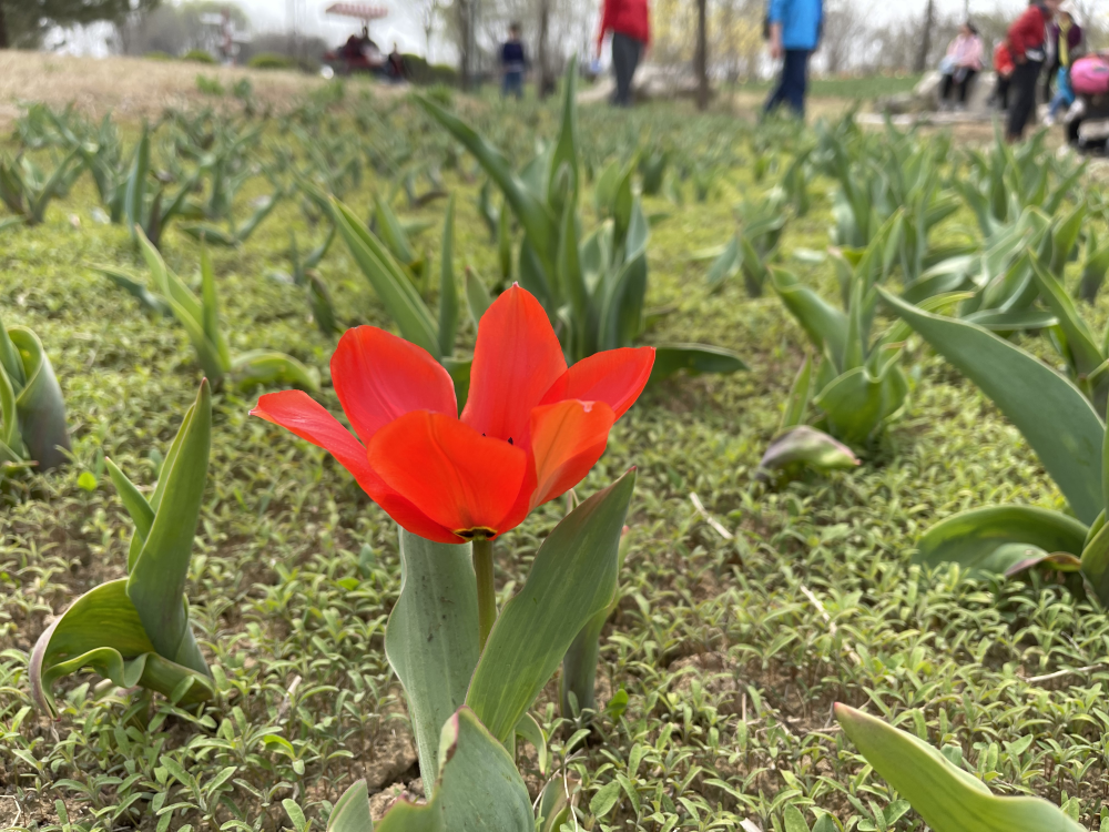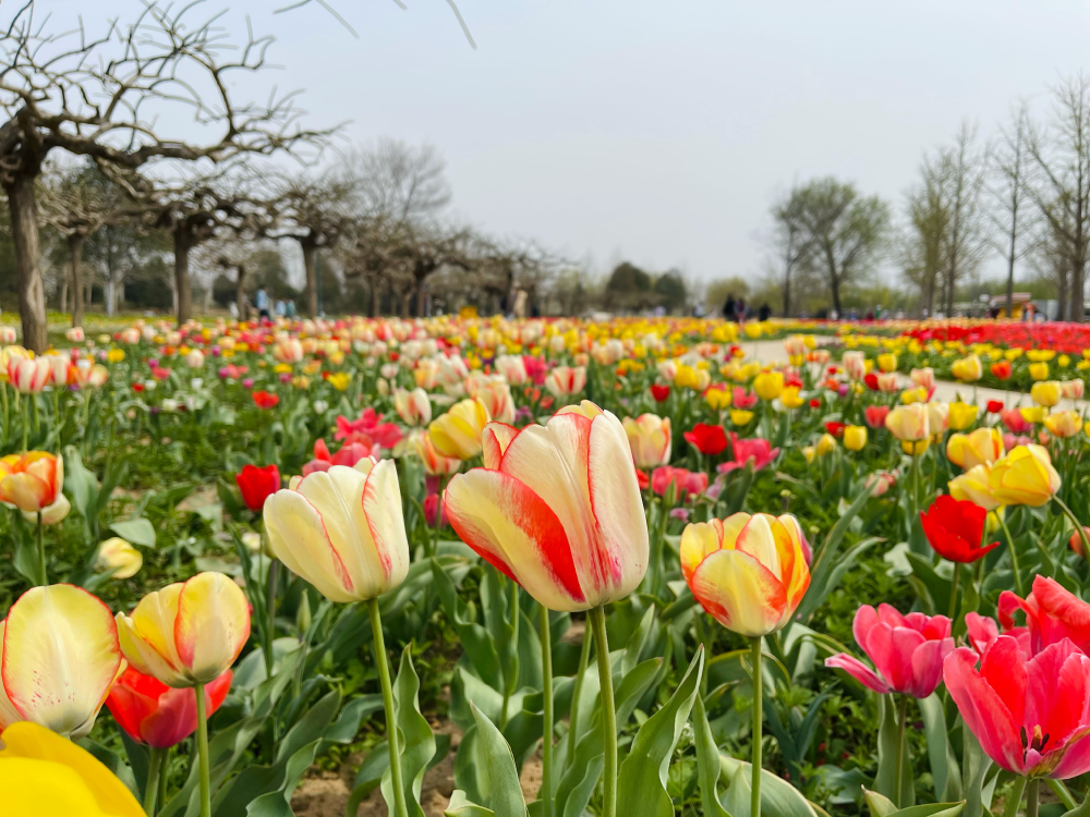 4月初,園內的鬱金香開了不少,簡直是金色和紅色的海洋。