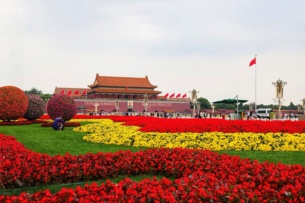在新中國成立75周年之際,以“築夢現代化,共繪新圖景”為主題的天安門廣場及長安街沿線花卉精彩亮相,引來許多市民遊客參觀、合影留念。