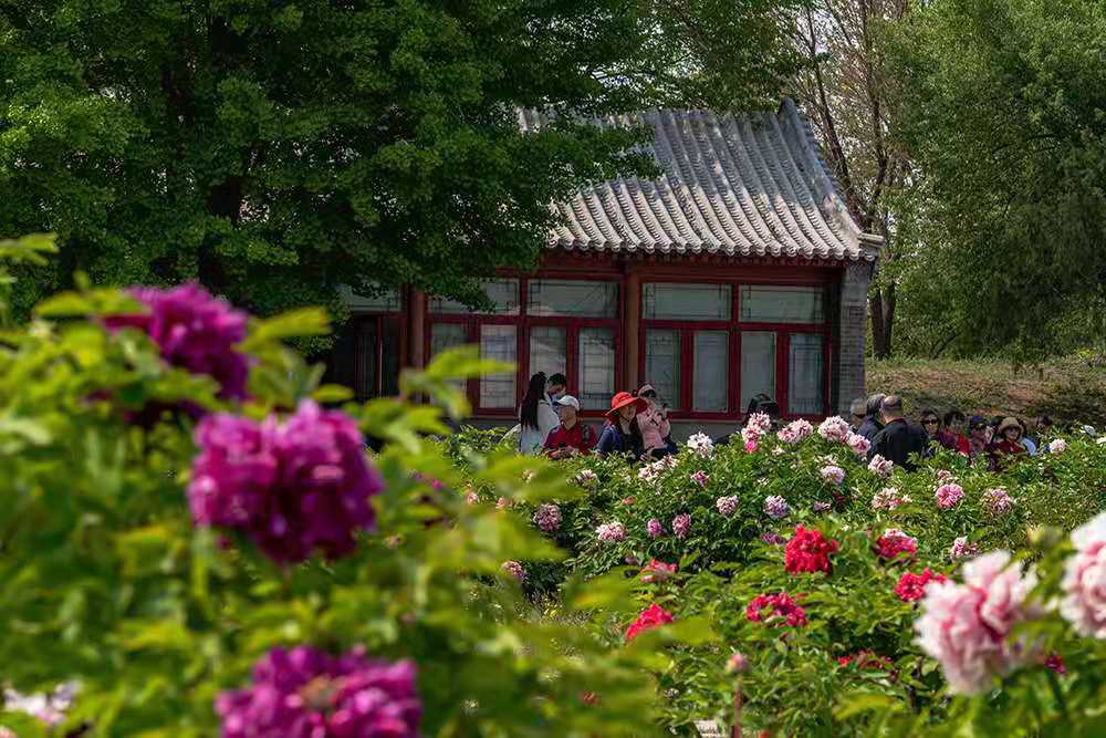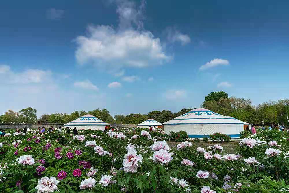 最美人間四月天,微風吹過,牡丹花在風中翩翩起舞,展現出婀娜的舞姿。一朵朵牡丹花在陽光的沐浴下,在綠葉的襯托下肆意綻放。那陣陣淡雅花香撲鼻而來,使人心曠神怡。圓明園的牡丹爭相綻放,吸引大批遊客前來觀賞。