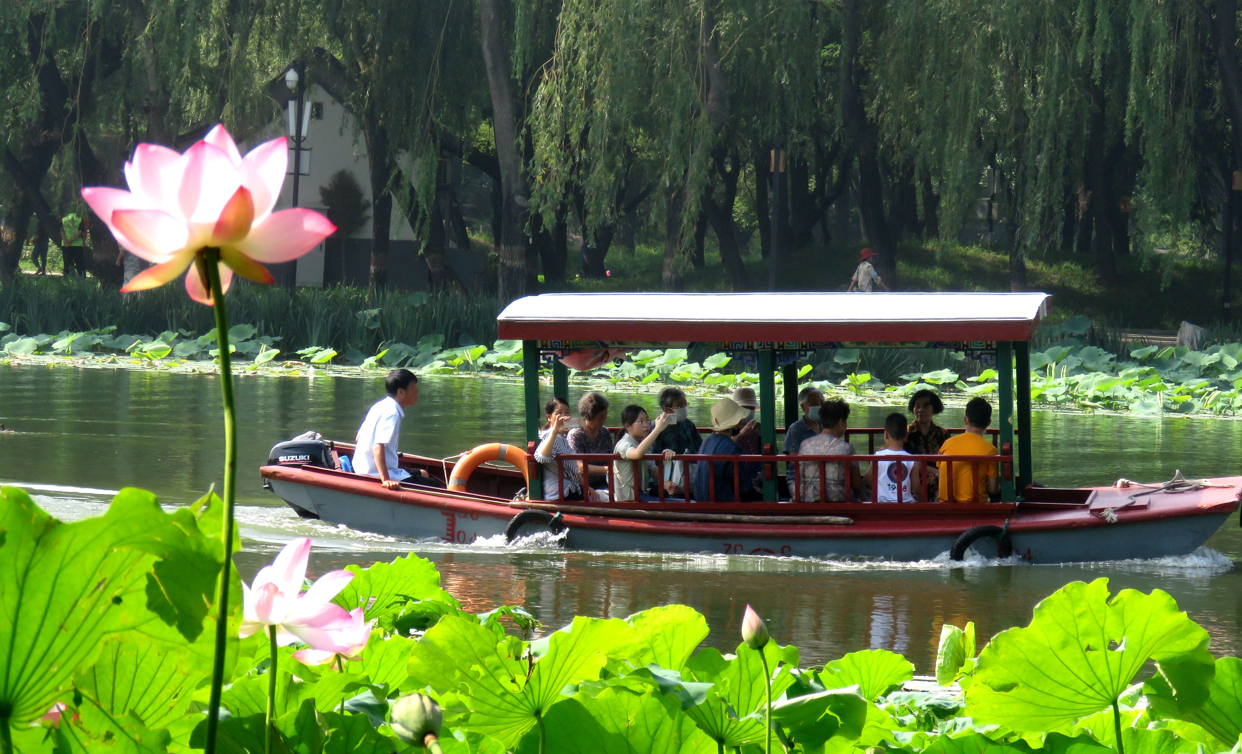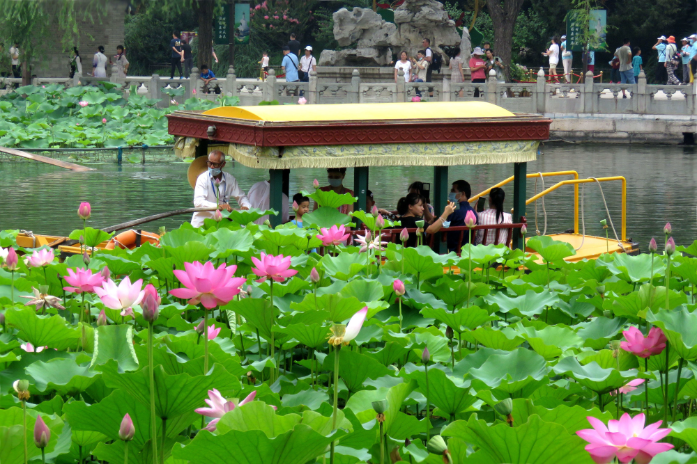 小暑過後,北京各大公園荷花進入盛花期,開展了豐富多彩的觀荷、賞荷、品荷文化活動,為豐富市民的假日活動提供了好去處。“荷花渡”深受市民遊客喜愛,遊船在花海中前行,讓人流連忘返。​