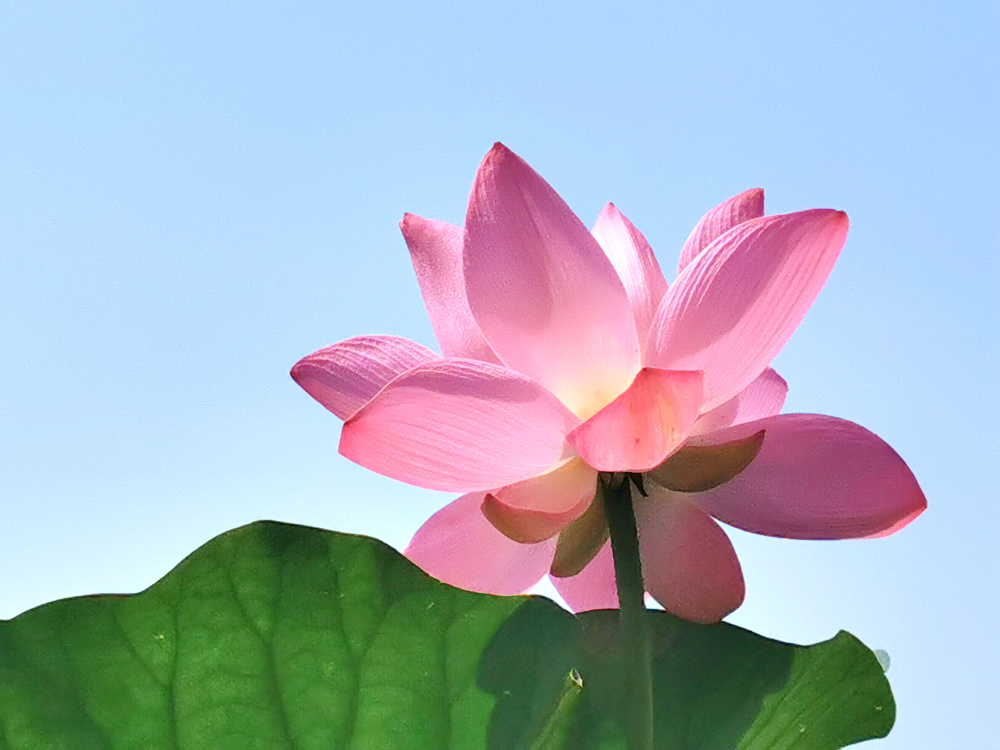 碧綠的荷葉,粉紅的荷花亭亭玉立。